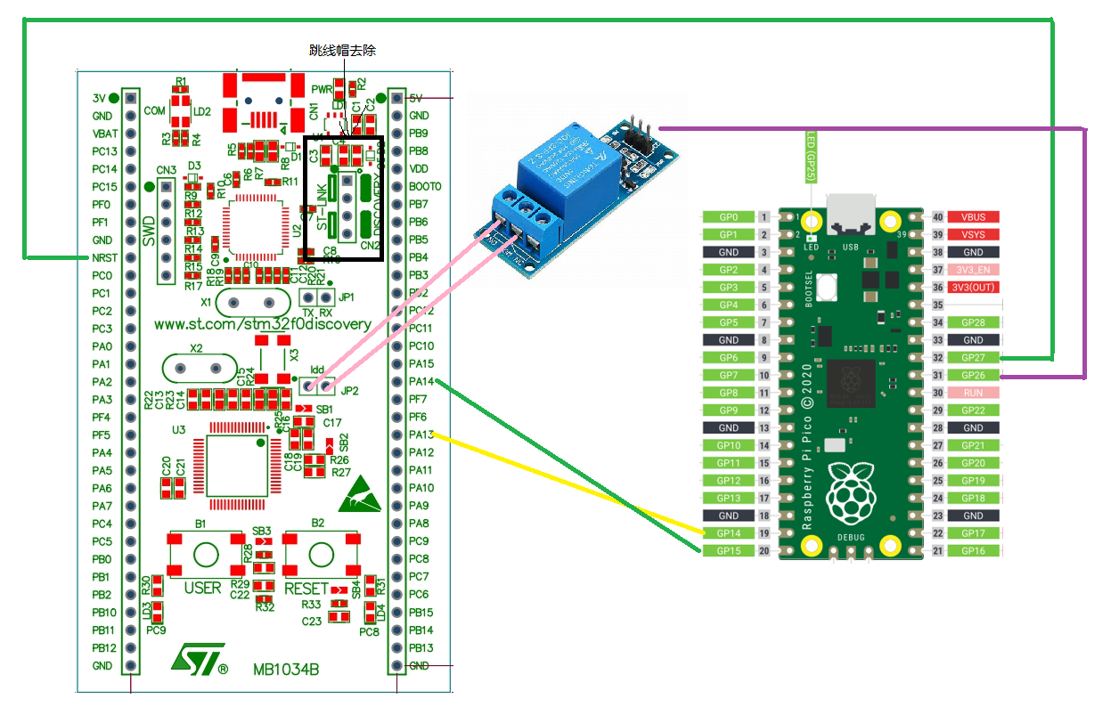 使用st公司的MB1034B开发板,断开板载调试接口(cn2)后控制电源JP2.